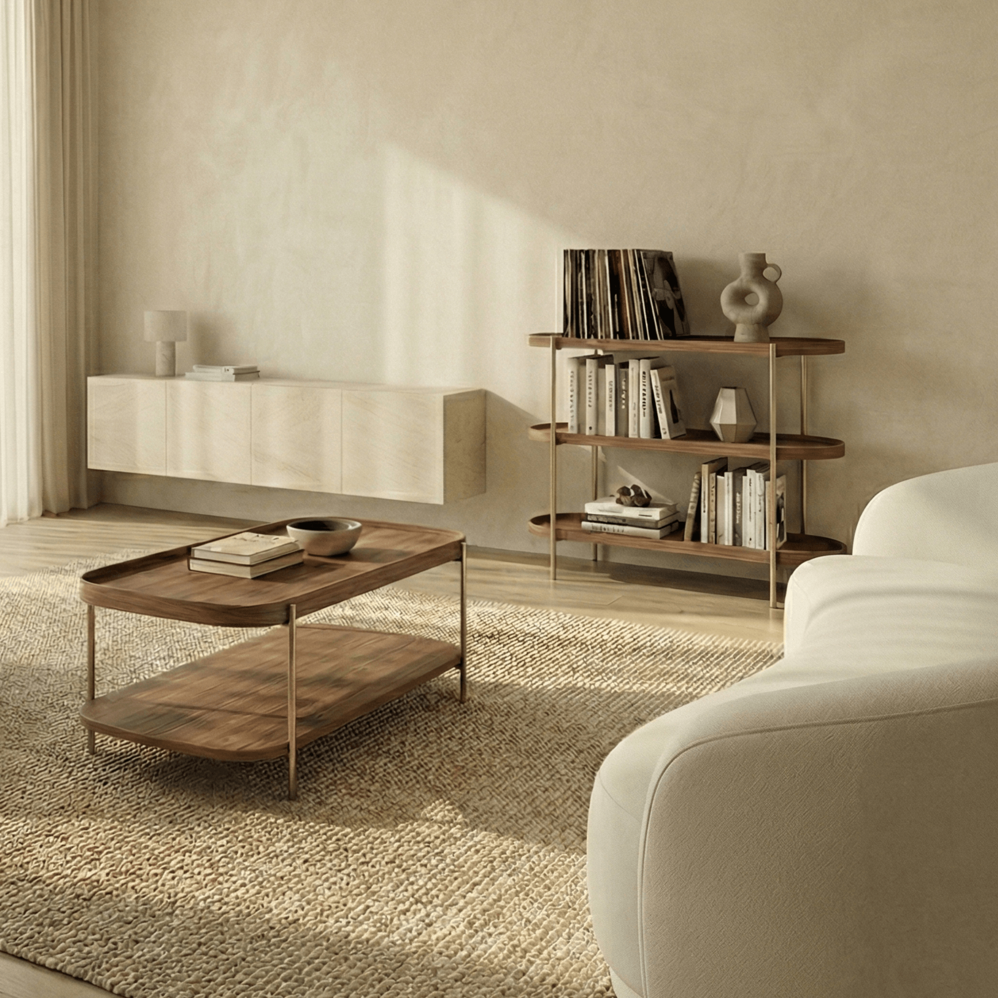 In addition to size, the style of the room should also be taken into account when choosing a coffee table. The table should complement the existing decor and enhance the overall aesthetic rather than clash with it. It should serve as the perfect companion to your sofa or armchair, harmonising with their style and colour.