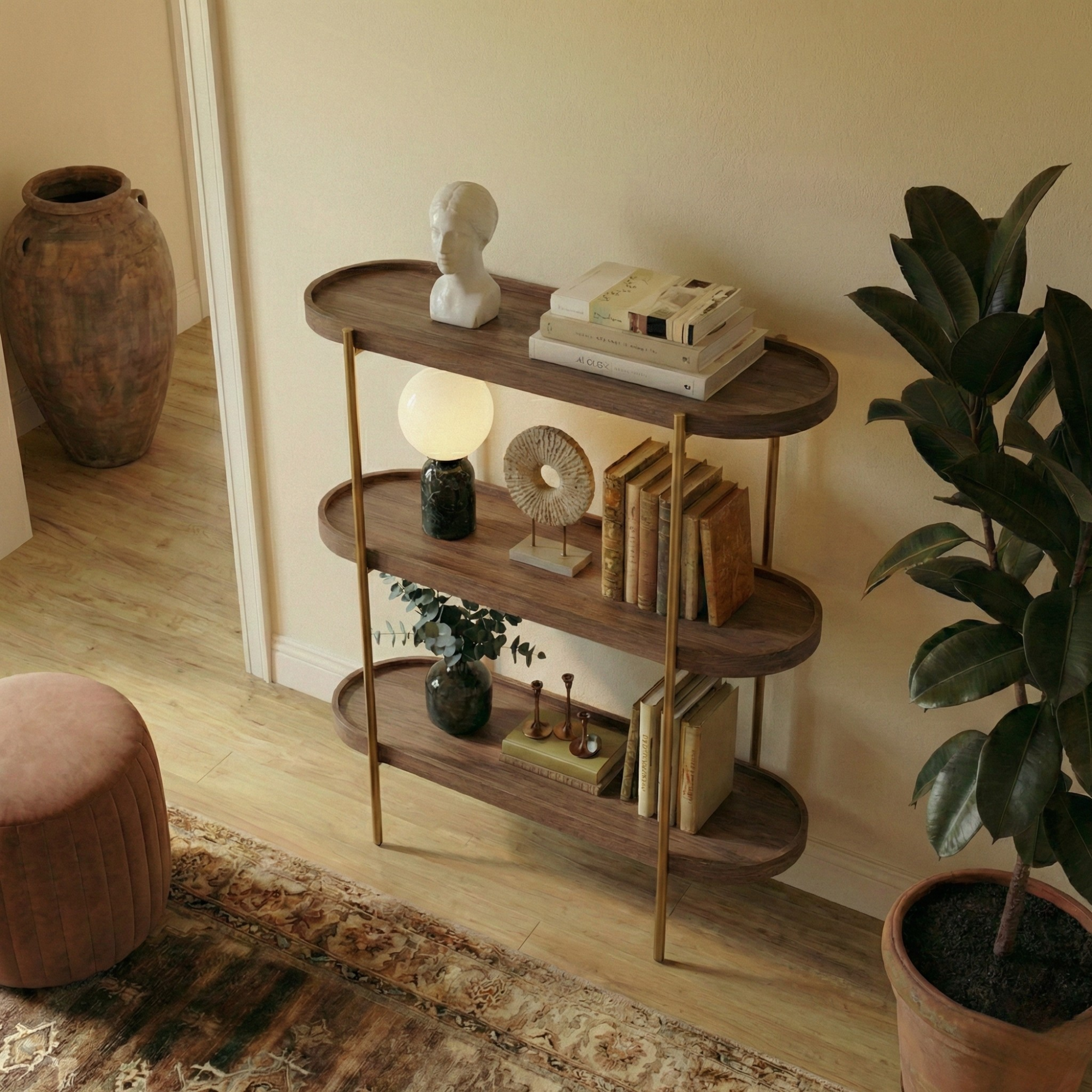 Shelving that works for books, objects, plants. And looks right doing it all.