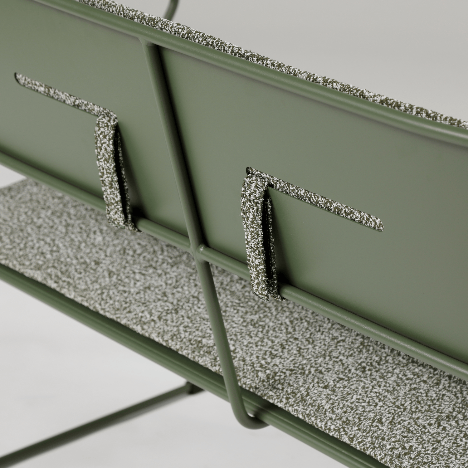 The Parco Outdoor 2 Seat Lounge combines contemporary design with exceptional comfort. Upholstered in soft boucle fabric, this sophisticated seating piece brings warmth and texture to your outdoor entertaining space. The generous two-seat configuration offers ample room for relaxation, while the olive tone complements modern and traditional landscapes alike. An optional boucle cushion elevates comfort and adds an extra layer of refined style to your garden or patio setting.