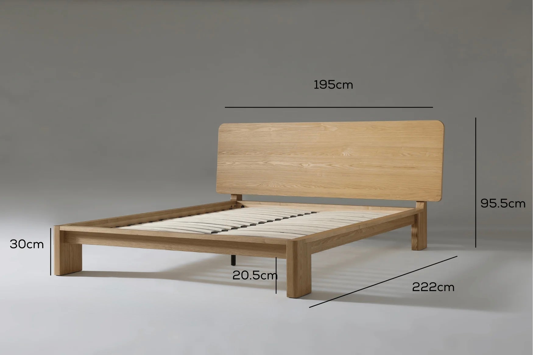Queen bed: Designed to fit a standard Australian queen mattress (approx. 153 cm × 203 cm). Overall external dimensions account for frame width and length so your mattress fits comfortably.