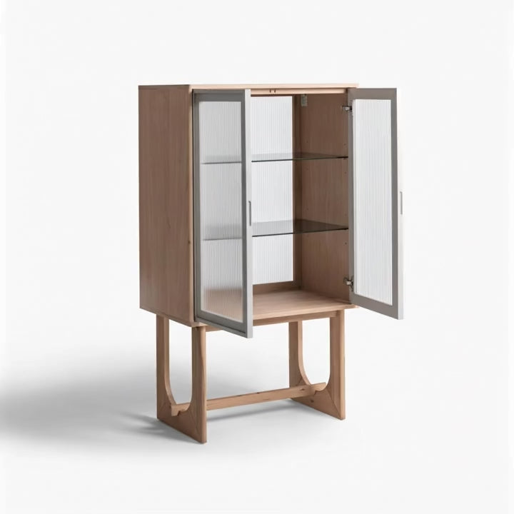 Elevate your space with the Oscar Tall Cabinet, crafted from natural oak and featuring elegant fluted glass doors framed by subtle beige trim. Standing 1.5 meters tall, this Scandi-inspired piece offers refined storage ideal for keepsakes or as a stylish liquor cabinet. Its modern design blends timeless materials with understated sophistication, making it a versatile addition to any contemporary interior.