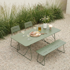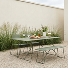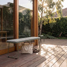 Versatile and chic, the Parco Outdoor Bench in Olive works as dining seating or a standalone feature in a garden nook. It combines the industrial strength of a Triple Powder coat frame with the softness of a full-length optional all weather boucle cushion