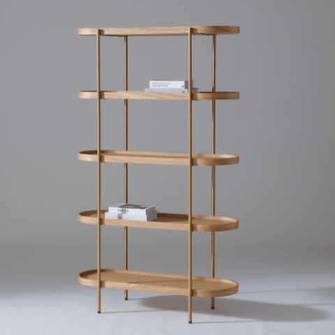 Introducing the Cleo Ash Colour 5-Tier Bookcase—a striking blend of modern design and natural warmth. With its 100cm width, option of timeless black or elegant gold side rails, and softly rounded edges, it brings a refined, organic feel to any space.