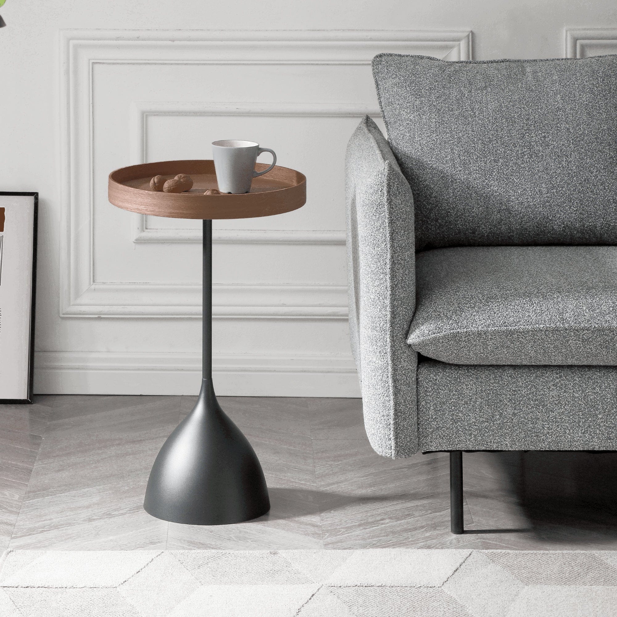 Harrison Round 40cm Side Table Walnut Tray Top & Metal Pedestal Black Base