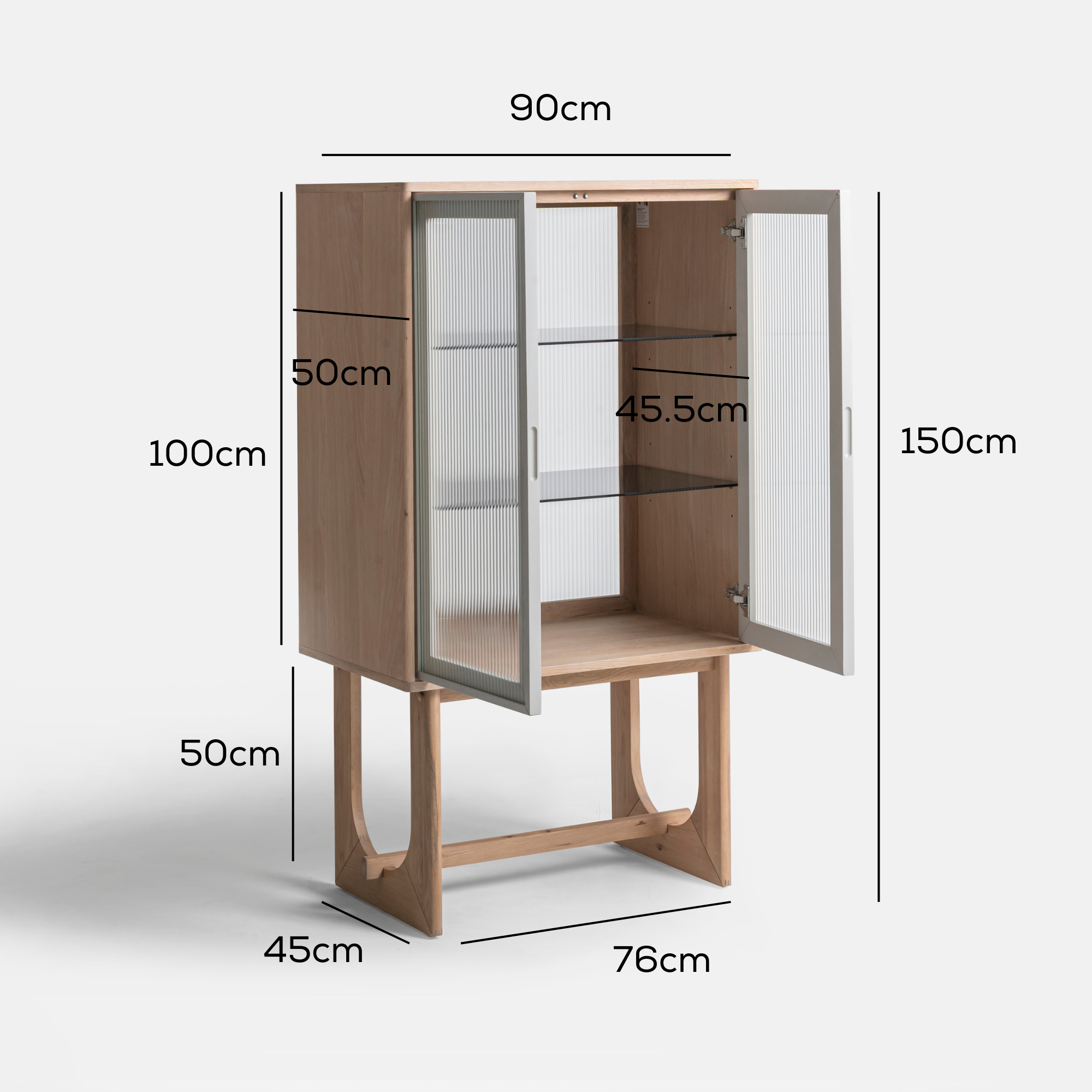 Elevate your space with the Oscar Tall Cabinet, crafted from natural oak and featuring elegant fluted glass doors framed by subtle beige trim. Standing 1.5 meters tall, this Scandi-inspired piece offers refined storage ideal for keepsakes or as a stylish liquor cabinet. Its modern design blends timeless materials with understated sophistication, making it a versatile addition to any contemporary interior.