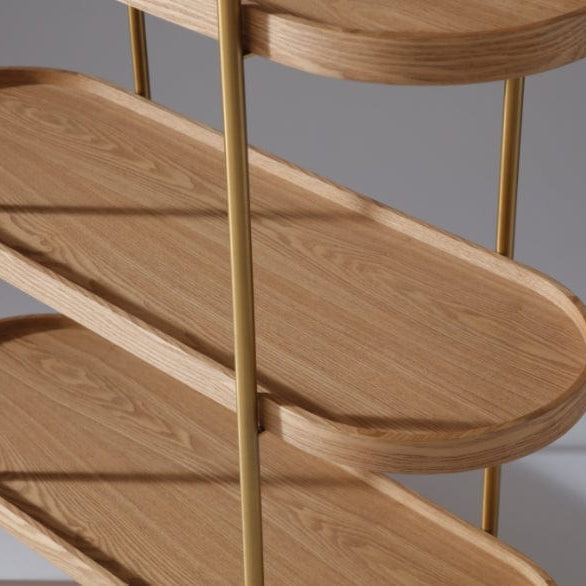 Cleo 5 Tier Shelf 165cm x 100cm Bookcase Natural Ash & Gold Frame